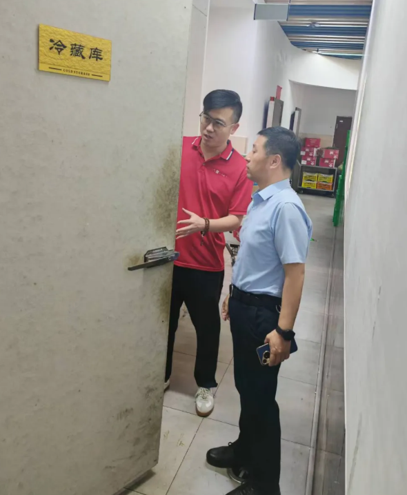 在雨露超市,检查组以“民生安全” 为核心,重点聚焦食品安全与消防安全两大关键领域开展检查。食品安全检查中,李铭刚仔细查看超市食品经营许可证、从业人员健康证等资质文件是否齐全有效,对节日期间热销的米面油、生鲜肉类、礼盒食品等商品进行逐一检查,详细核对生产日期、保质期,确保商品来源可溯、质量合格。同时,针对散装食品的储存环境、防尘防蝇设施配置情况进行细致查验,要求超市严格落实进货查验,坚决杜绝过期变质、“三无” 食品流入市场,保障群众 “舌尖上的安全”。