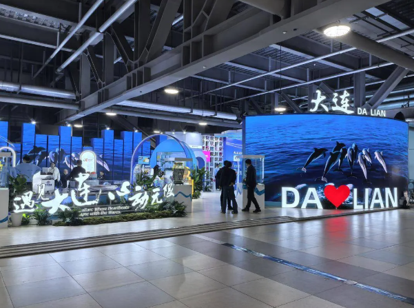 浅棕、墨绿色调下,抽象线条勾勒出山脉轮廓,搭配木质展架,好似山林之景;地面铺着海浪纹理地垫,顶部悬挂着蓝色纱幔,仿佛碧海波涛……走进本届进博会,辽宁展区形象布展紧贴“山海辽宁”,以“乐购辽宁,惠享美好”为主题,集结了大连海鲜、盘锦大米、葫芦岛泳装等200余种“辽宁好物”,集中展示“辽宁制造”的深厚底蕴和现代商业的创新活力。大连展区以“遇见大连 心动无限”为主题,划分“地方名产”“文化传承”“新品潮品”“人文原创”四大展示单元,携特色展品与创新成果集中参展,全方位展现大连的人文底蕴与城市发展活力。